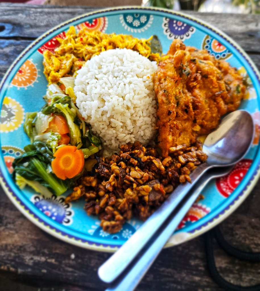 Warung Varuna is the place to go, from the tasty yellow rice infused with coconut and lemongrass, to the nasi goreng, the vegetables are fresh and tasty, the chicken in all its forms is delicious, a rimbambelle of dishes we’d all love to try. Don’t forget your whole coconut to stay hydrated. Located a few steps from Pantai Batu Bolong beach, this is a chill & stay spot, where you can take away or stay in and finish off with a cool ice cream just outside the door. It’s a meeting place for all Indonesian culinary specialties! The price is slightly low for the quality. Try the tempe manis/sweet tempe.
